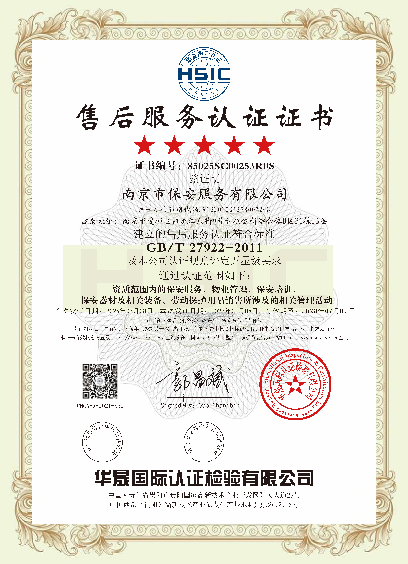 祝賀:南京市保安服務(wù)總公司通過企業(yè)誠信管理體系認(rèn)證和企業(yè)社會責(zé)任管理體系認(rèn)證